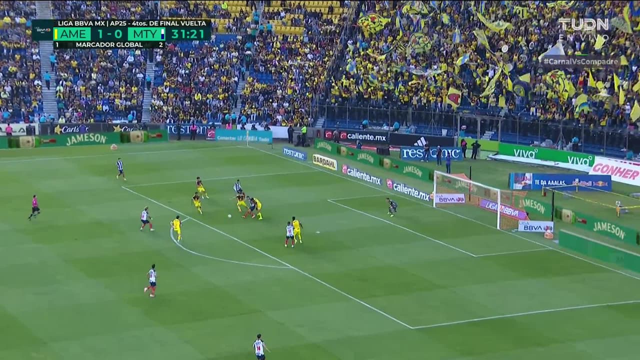 Tiro atajado por abajo a la izquierda. Sergio Canales (Monterrey) Disparo con la derecha desde fuera del área. Asistencia de Germán Berterame.