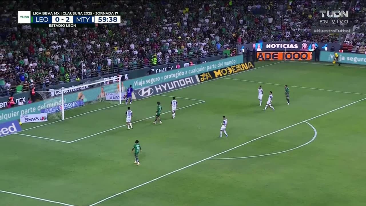 Tiro atajado raso al centro del arco. Stiven Barreiro (León) disparo de cabeza desde el centro del área.