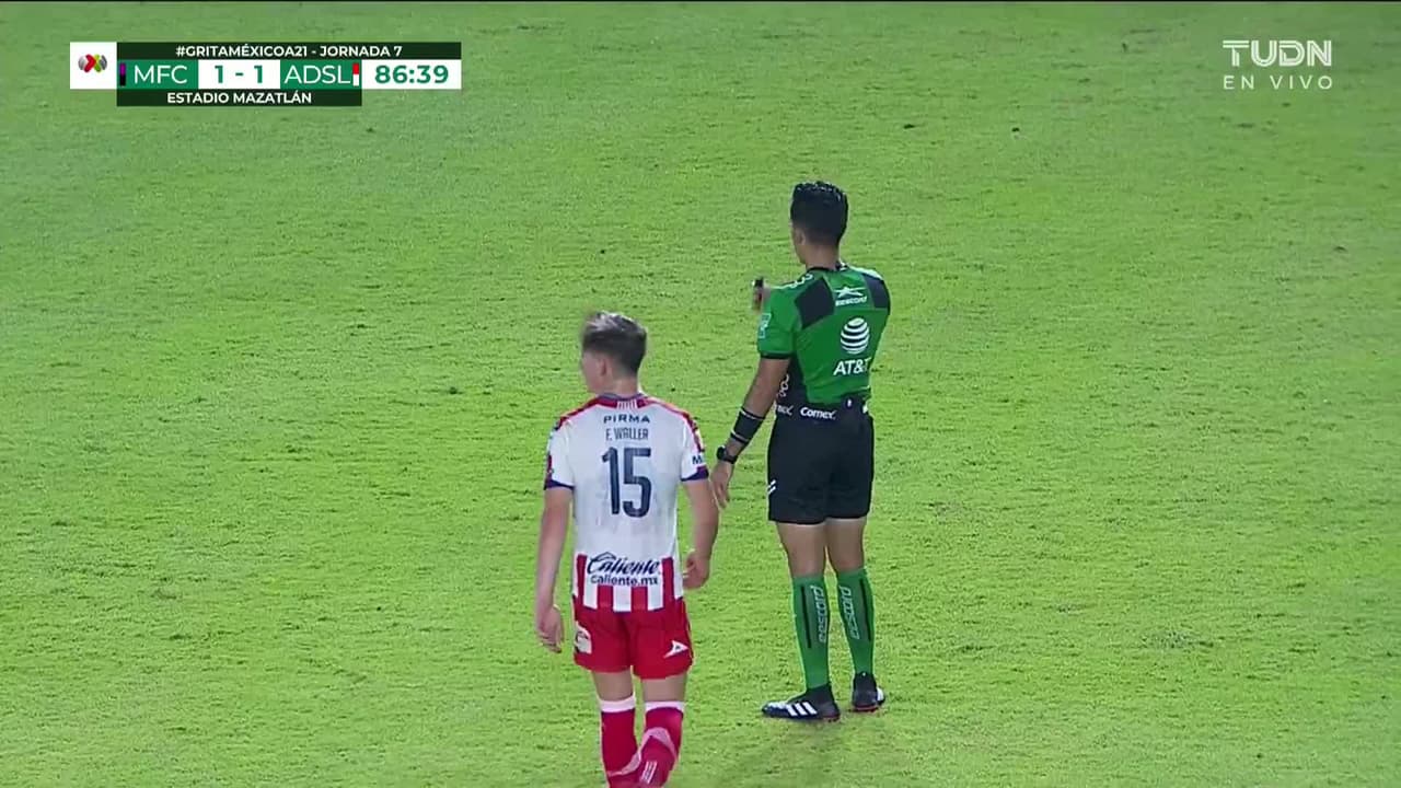 Remate parado junto al lado derecho de la portería. Unai Bilbao (Atlético San Luis) remate con la izquierda desde muy cerca.