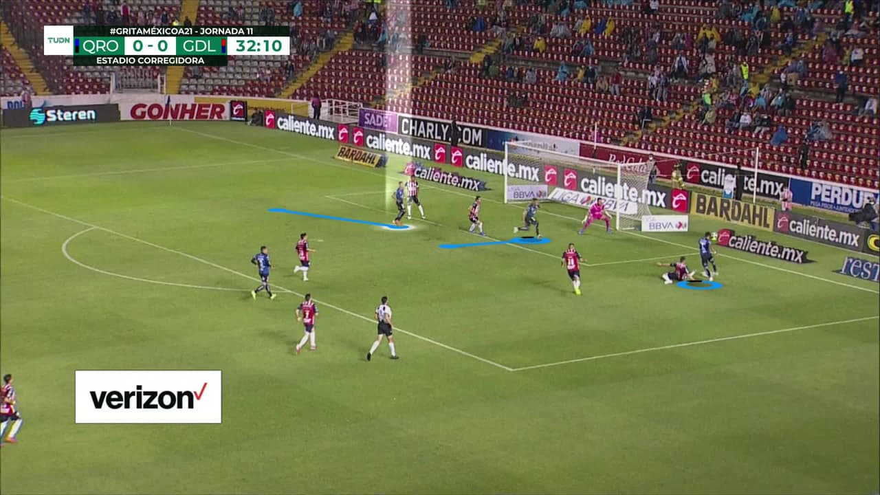 Remate parado. Uriel Antuna (Chivas ) remate con la derecha desde fuera del área.
