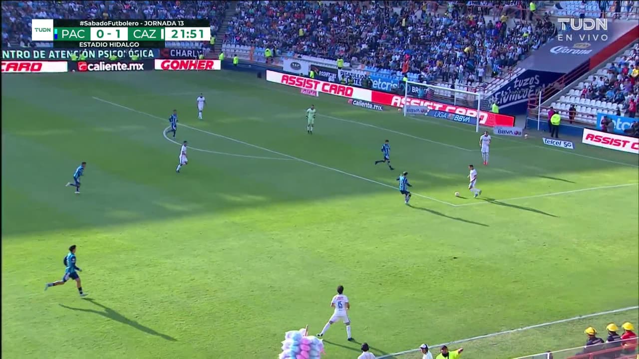 Tiro atajado al ángulo superior derecho. Uriel Antuna (Cruz Azul) Disparo con la derecha desde el lado derecho dentro del área. Asistencia de Michael Estrada pase largo.