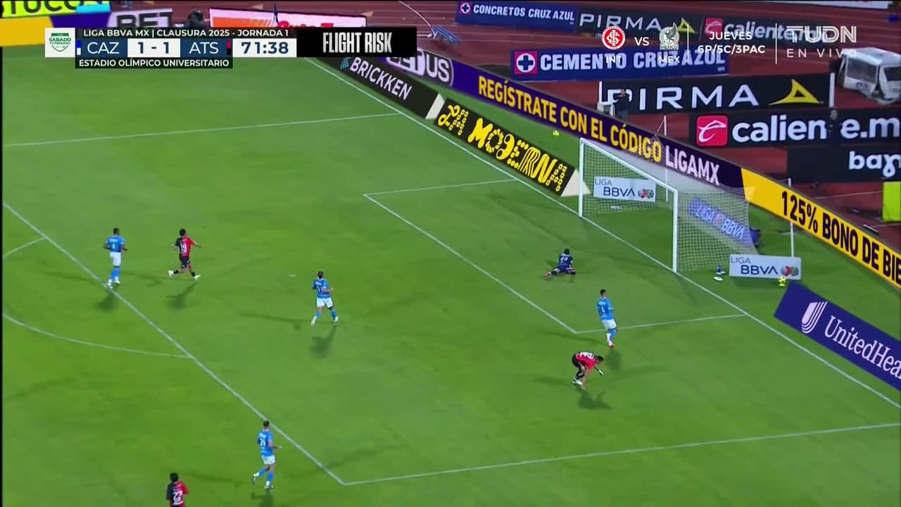 Tiro atajado por abajo a la izquierda. Uros Djurdjevic (Atlas) Disparo con la derecha desde el lado derecho dentro del área. Asistencia de Aldo Rocha.
