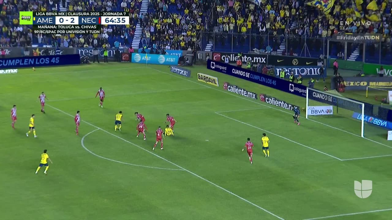 Tiro atajado raso al centro del arco. Víctor Dávila (América) Disparo con la derecha desde el centro del área. Asistencia de Álvaro Fidalgo.