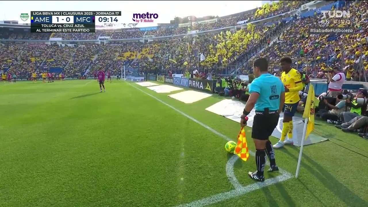 Tiro atajado junto al lado derecho de la portería. Víctor Dávila (América) zurdazo desde el centro del área. Asistencia de Kevin Álvarez.