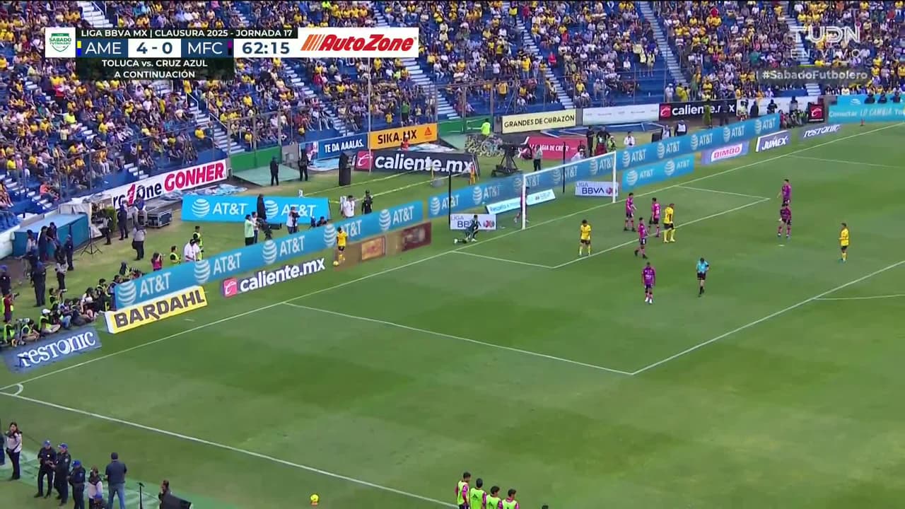 Tiro atajado raso al centro del arco. Víctor Dávila (América) zurdazo a quemarropa desde el lado izquierdo.