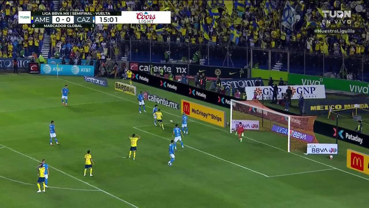Tiro atajado raso al centro del arco. Víctor Dávila (América) zurdazo desde el lado izquierdo dentro del área. Asistencia de Cristián Borja.