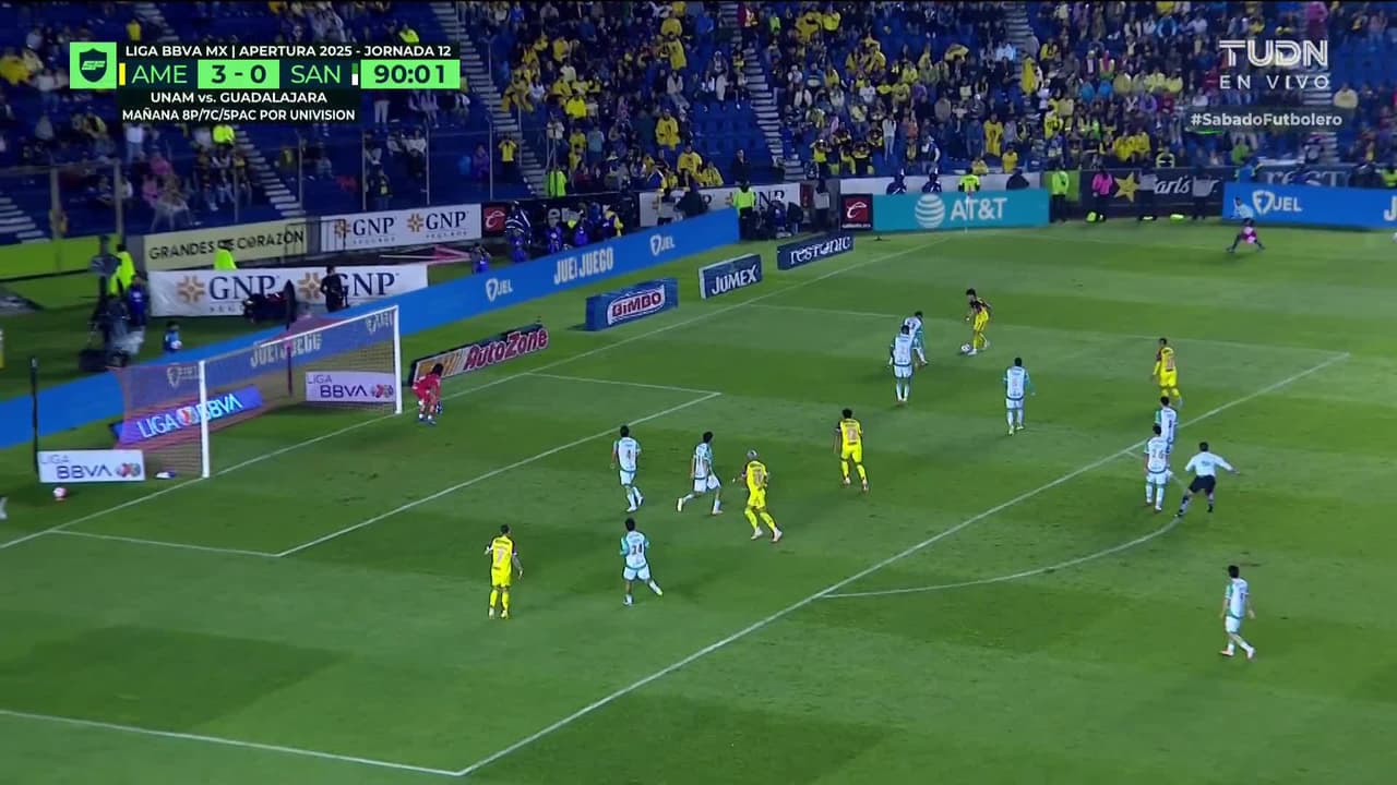 Tiro atajado junto al lado derecho de la portería. Víctor Dávila (América) zurdazo desde fuera del área.