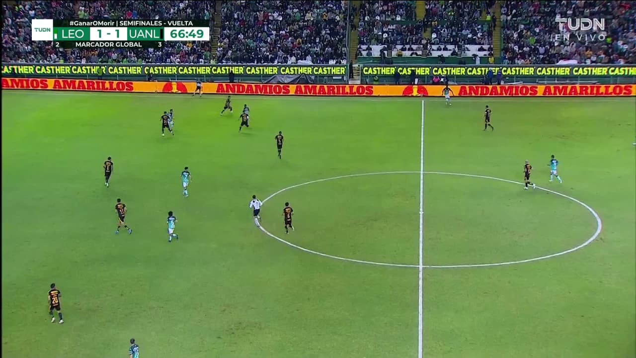 Tiro atajado por abajo a la izquierda. Víctor Dávila (León) zurdazo desde el centro del área. Asistencia de Osvaldo Rodríguez con un centro al área.