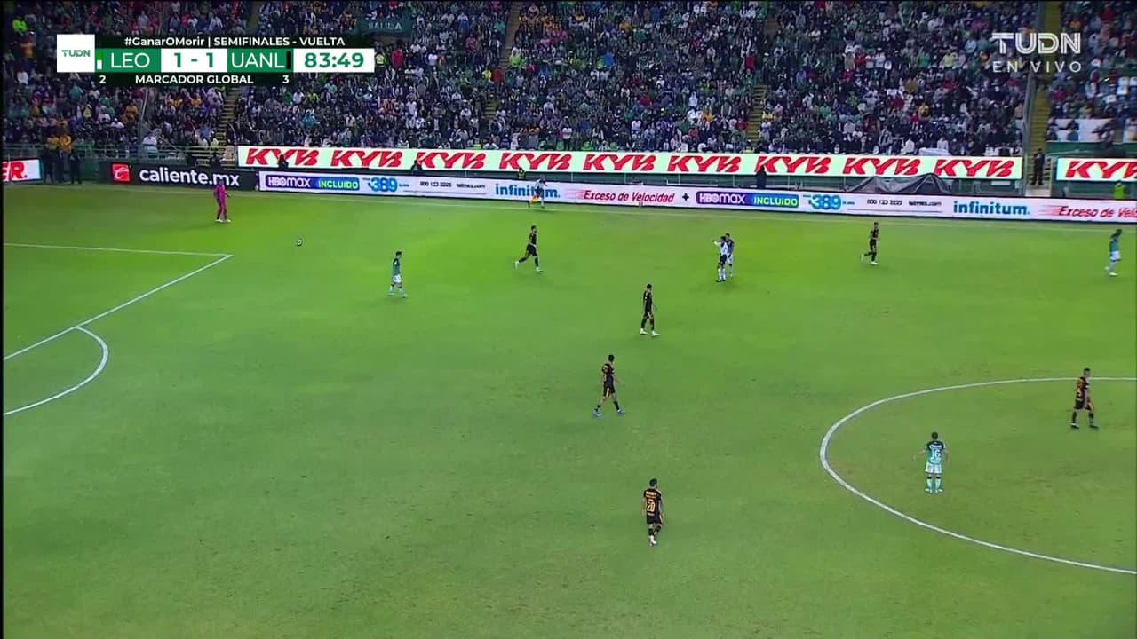 Tiro atajado raso al centro del arco. Víctor Dávila (León) zurdazo desde el lado izquierdo dentro del área. Asistencia de William Tesillo.
