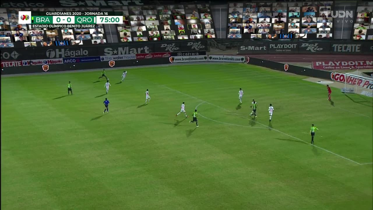Tiro atajado junto al lado derecho de la portería. Gustavo Velázquez (FC Juárez) disparo de cabeza desde el centro del área. Asistencia de William Mendieta con un centro al área.