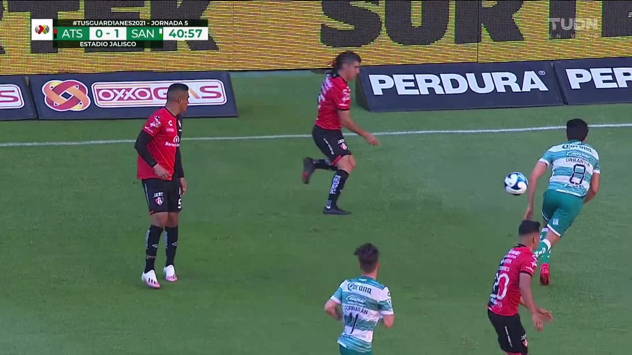 Tiro atajado por abajo a la izquierda. Víctor Malcorra (Atlas) zurdazo desde el lado izquierdo dentro del área.