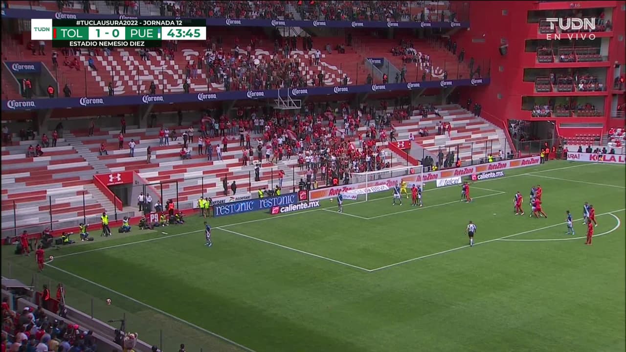 Tiro atajado raso al centro del arco. Valber Huerta (Toluca) zurdazo desde el centro del área.