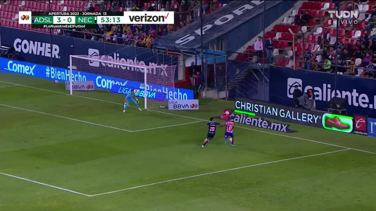 Tiro atajado Por arriba en el centro del arco. Vitinho (Atlético San Luis) Disparo con la derecha sin ángulo desde la derecha. Asistencia de Javier Güémez pase largo.