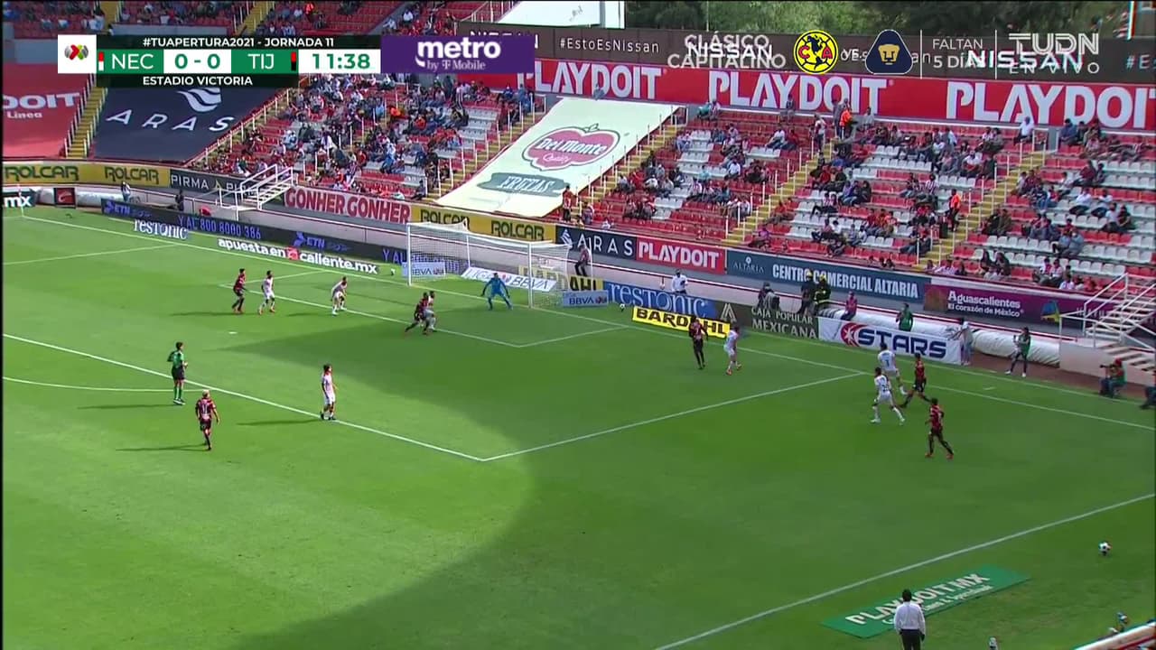 Remate parado por bajo a la izquierda. Vladimir Loroña (Tijuana) remate de cabeza a quemarropa desde el lado izquierdo. Asistencia de Esteban Pavez con un centro al área.