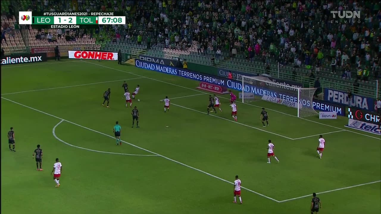 Tiro atajado junto al lado derecho de la portería. William Tesillo (León) Disparo con la derecha desde el centro del área. Asistencia de Jean Meneses.