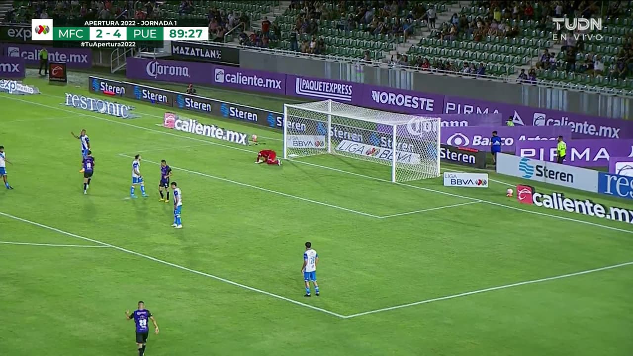 Tiro atajado. Yoel Bárcenas (Mazatlán FC) Disparo con la derecha desde fuera del área.