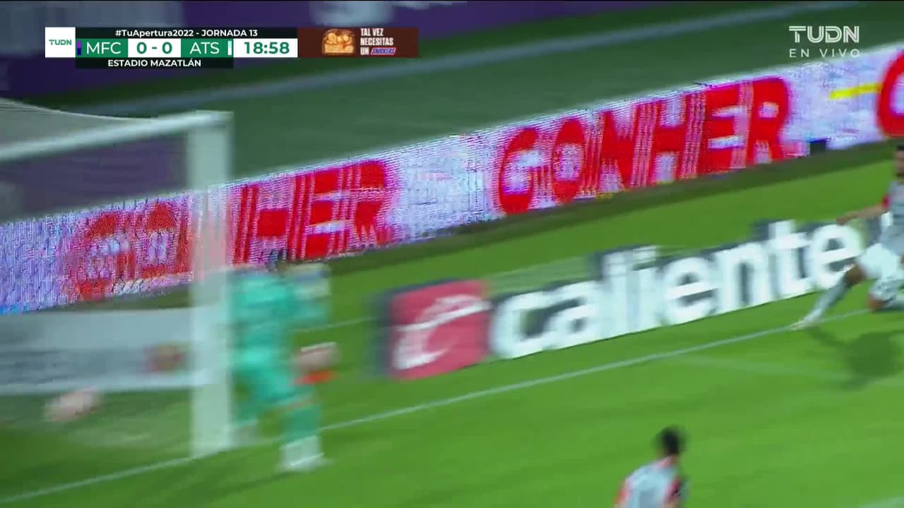 Tiro atajado raso al centro del arco. Yoel Bárcenas (Mazatlán FC) Disparo con la derecha desde el centro del área. Asistencia de Eduard Bello con un centro al área.