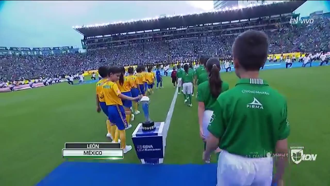 Como parte de la ceremonia protocolaría, 11 niños acompañan a cada uno de los equipos a la cancha y fue el último de ellos, que salió del lado de los felinos del norte quien decidió romper la regla de no tocar el galardón que levantará el campeón del balompié mexicano en el Clausura 2019.