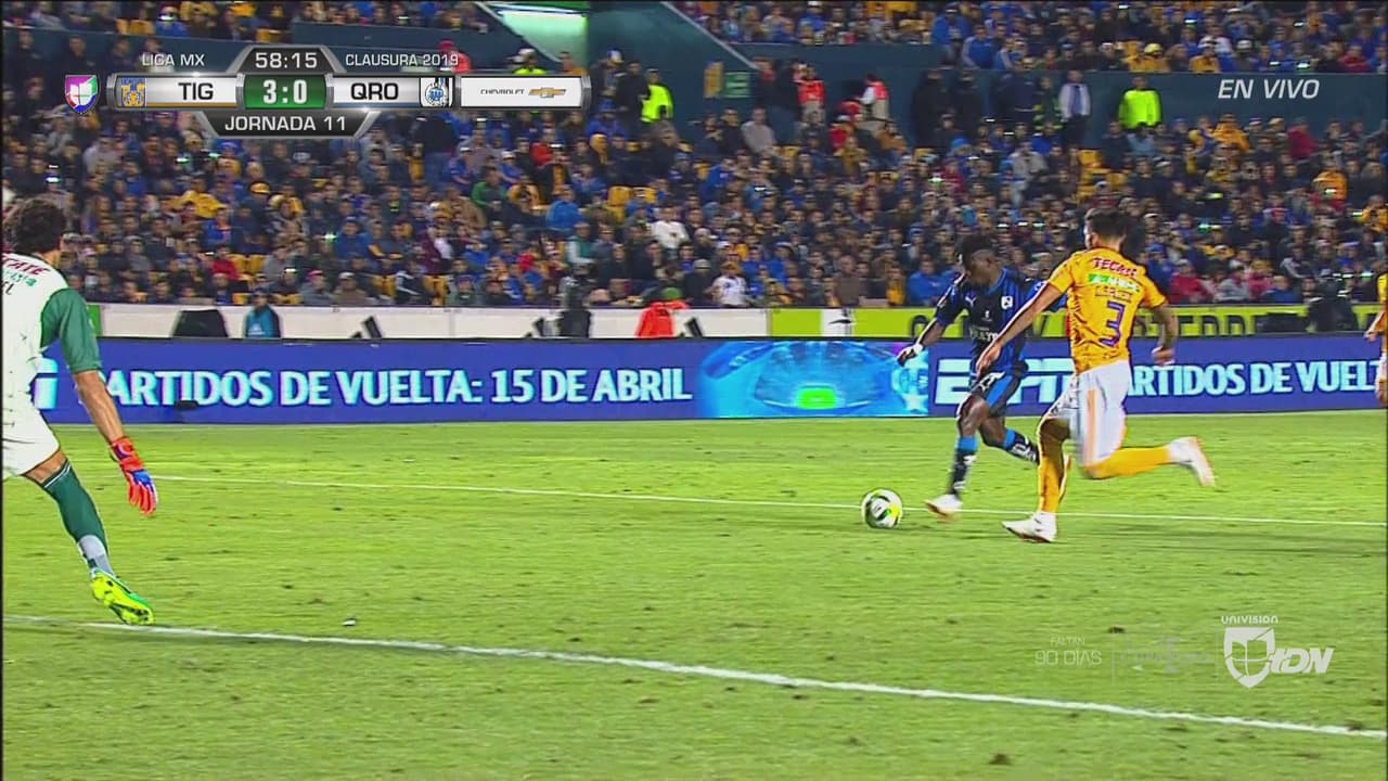 Tras un pase del Keko Villava, el africano buscaba el segundo palo de Nahuel Guzmán, pero el esférico terminó colocado por fuera de la portería.