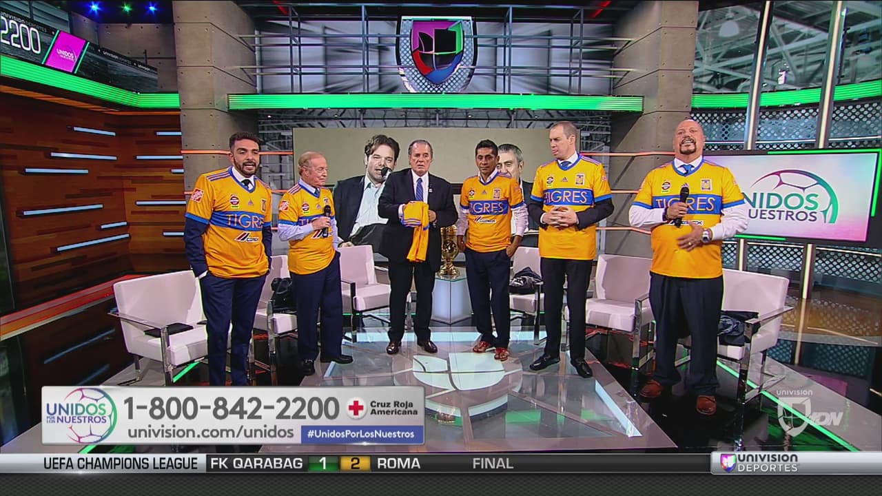 Tras la espectacular aportación de CEMEX y la directiva felina, los comentaristas de Unidos por los Nuestros se enfundaron en la playera del quinto grande de México.
