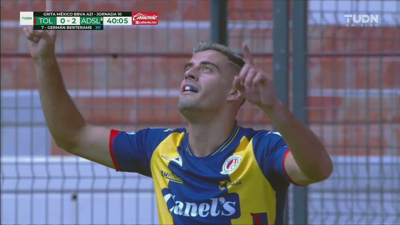 San Luis le propinó su segunda derrota consecutiva al Toluca con doblete de la locomotora Germán Berterame, que demostró su grandiosa capacidad física para sentenciar el juego en ataque contra tres defensas en custodia. Los Diablos Rojos ceden terrenos en el Grita México A21 BBVA MX.