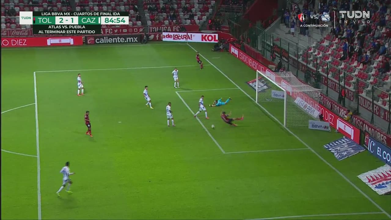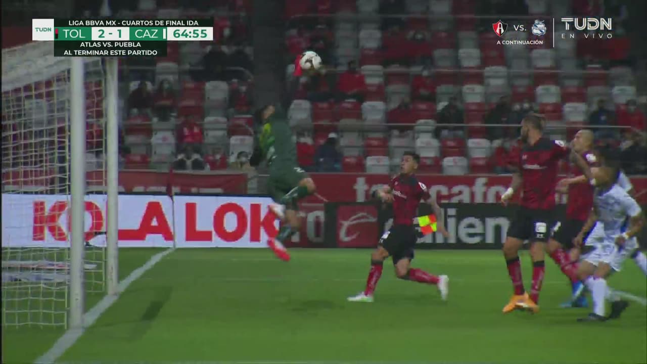 Chuy Corona evita el segundo gol de los Diablos Rojos con un manotazo cuando ya se saboreaba el gol Raúl 'Dedos' López.