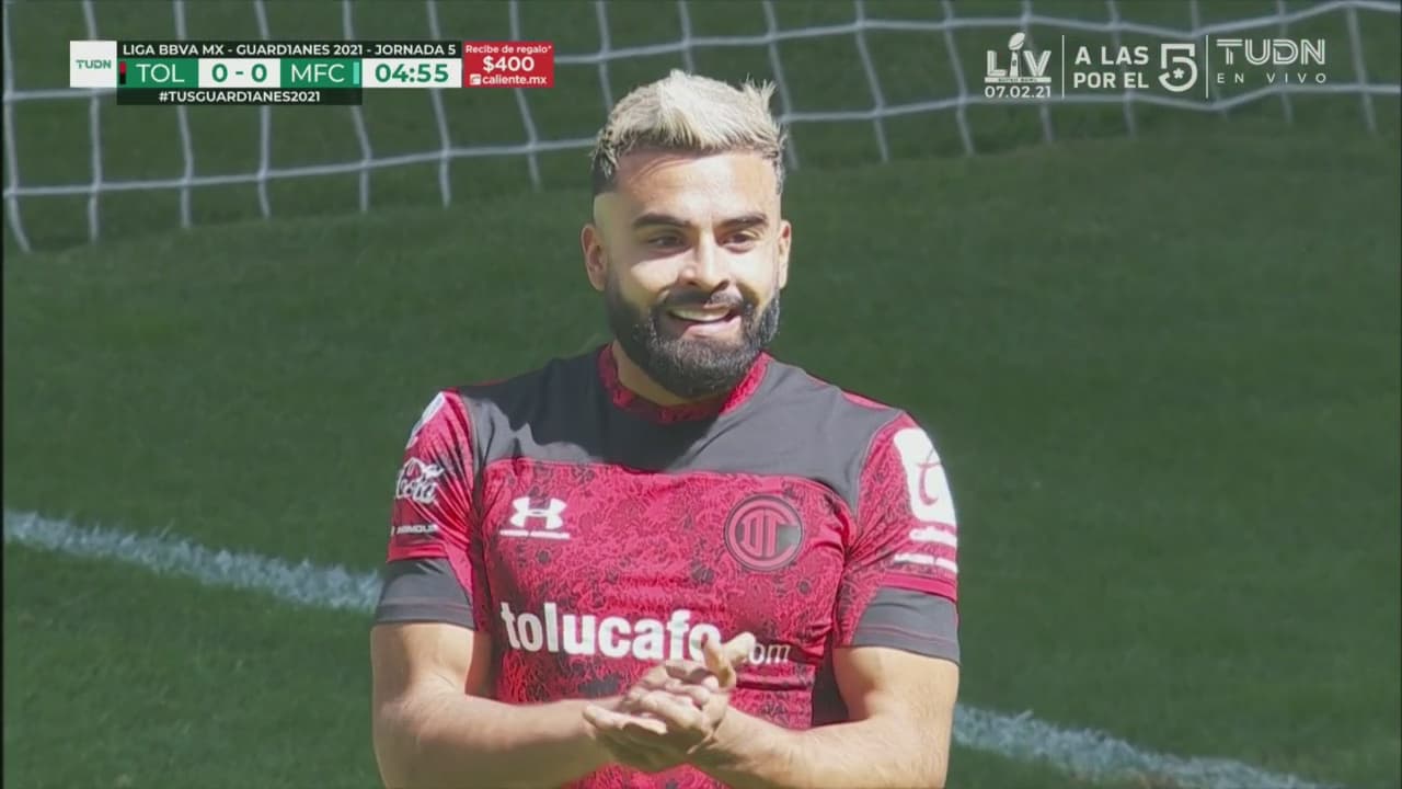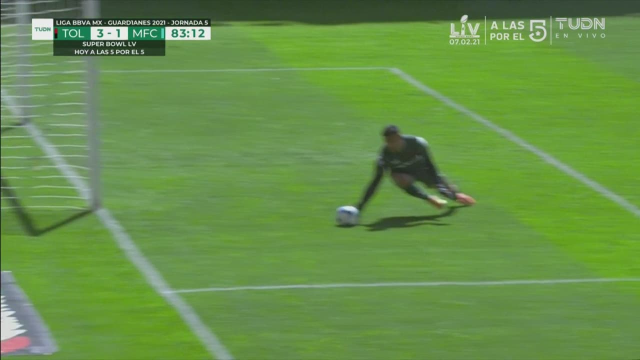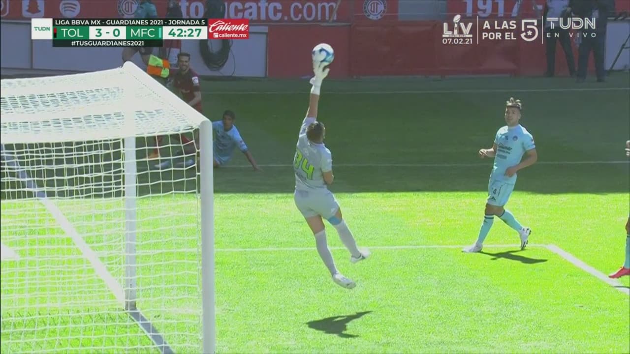 Toluca andaba con tanta confianza que hasta el Dedos López quería meter su gol, pero Vikonis atajó muy bien.