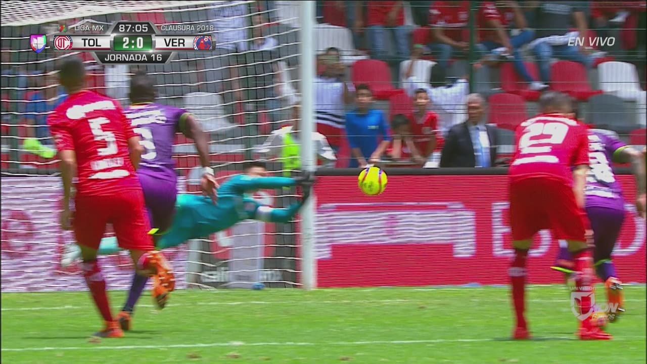 El primer gol llegó tras un error de Melitón. Muy rápido en el partido, Toluca pegó luego de una mala salida del guardameta veracruzano que el Pitu Barrientos aprovechó para poner el 1-0.