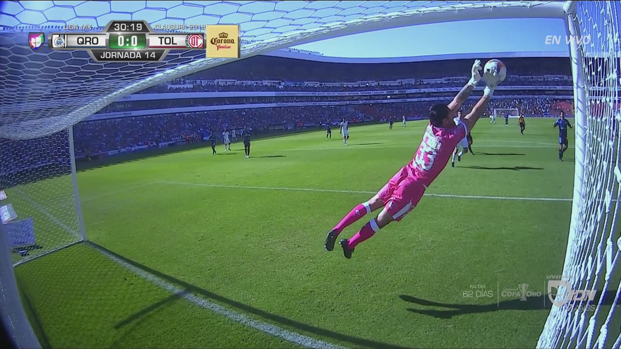 Santiago García aprovechó el espacio para sacar un zurdazo que buscaba colarse en el ángulo del arco de Alcalá, quien llegó a tiempo para desviar al tiro de esquina. Querétaro 0 – 0 Toluca.