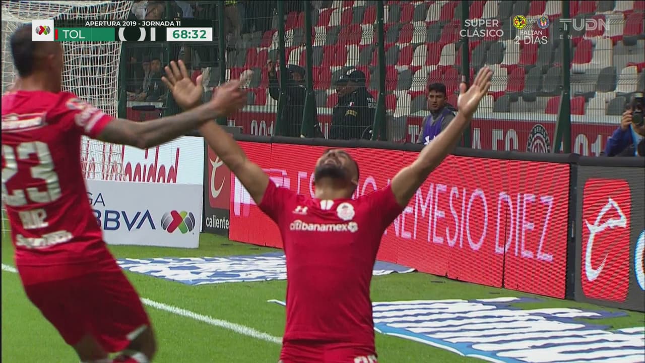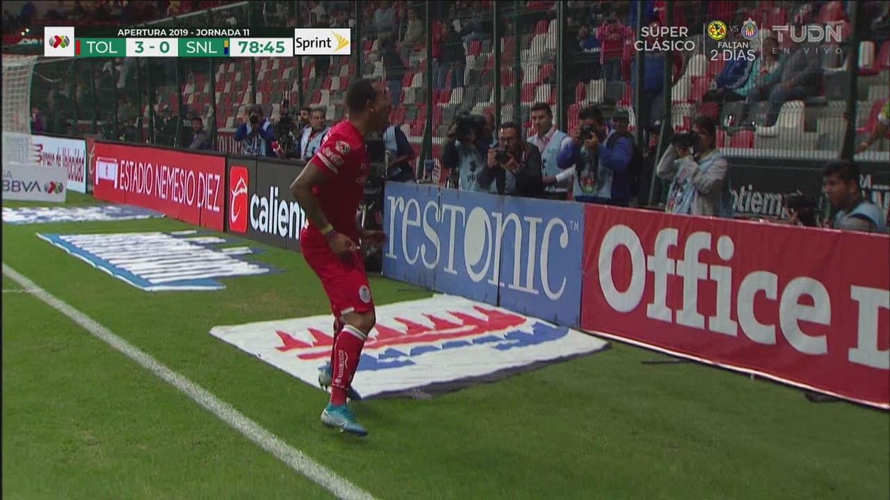 Para la segunda parte, con un Toluca precavido y ansioso de concretar la victoria, aprovechó los espacios que generó Atlético de San Luis en su afán de empatar, para que Alexis Canelo sorprendiera solo frente a Carlos Rodríguez, a quien se sacudió y definió cruzado con la portería abierta.