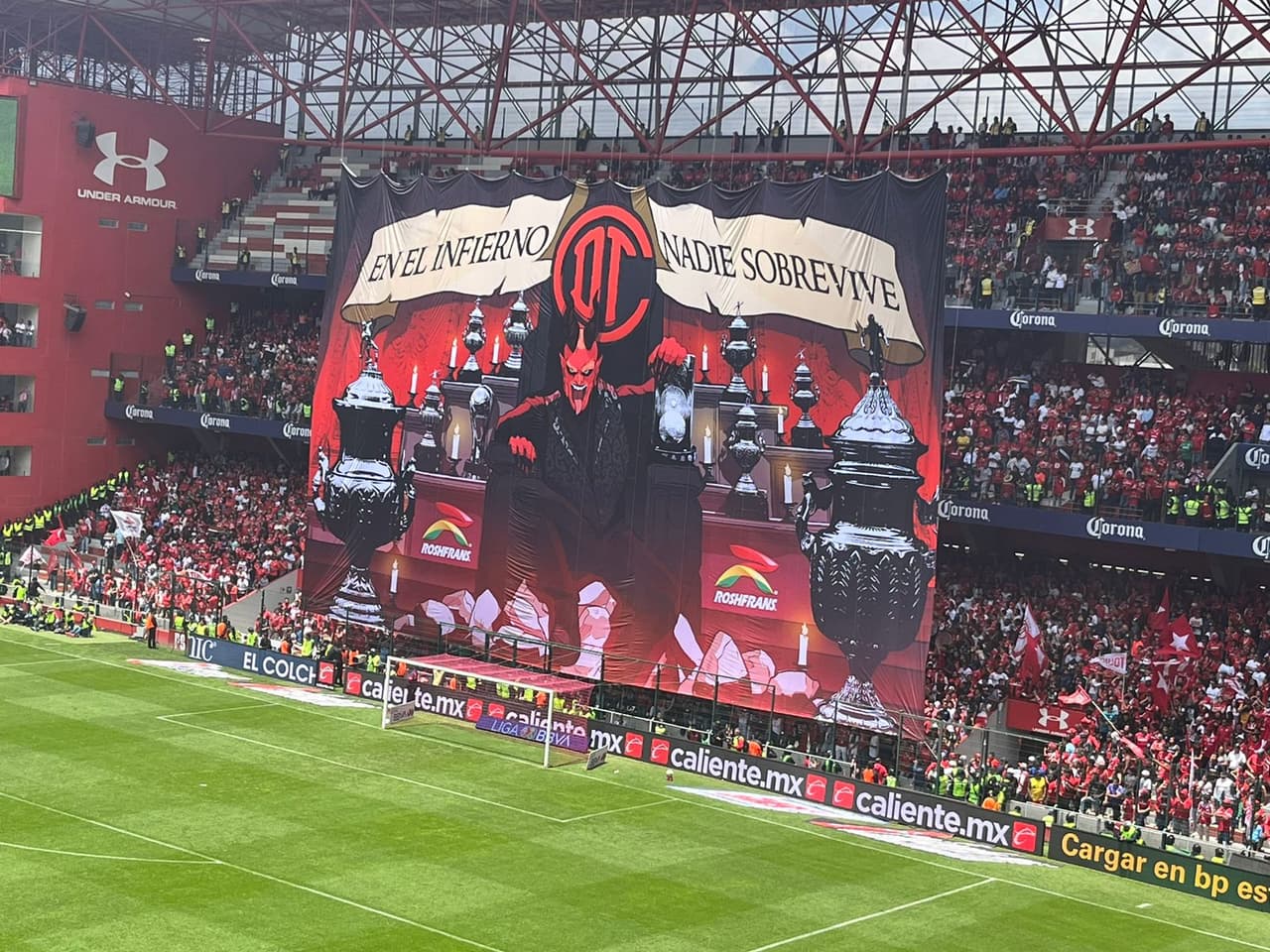 Los fans de los Diablos Rojos soltaron una gran manta en apoyo a su equipo ante Tigres este domingo.