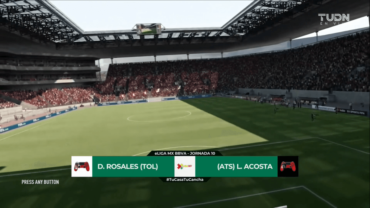 Diego Rosales en los controles del Toluca, se llevó el partido con cuatro golazos ante los rojinegros de Lucho Acosta, que logró tres goles. Se perdió la señal un par de veces, lo que hizo el encuentro aún más emociónate en la eLiga MX.