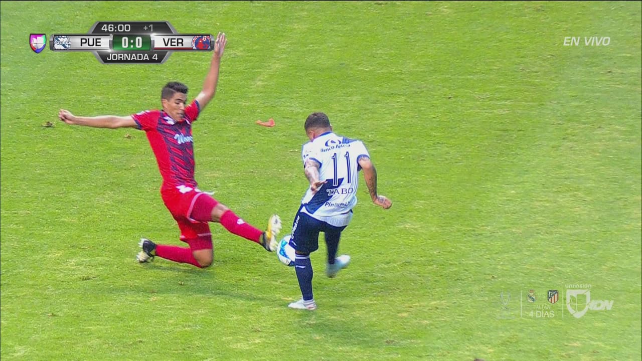 El mediocampista de los 'jarochos' se llevó la amarilla por una jugada muy violenta sobre el uruguayo Tabó.