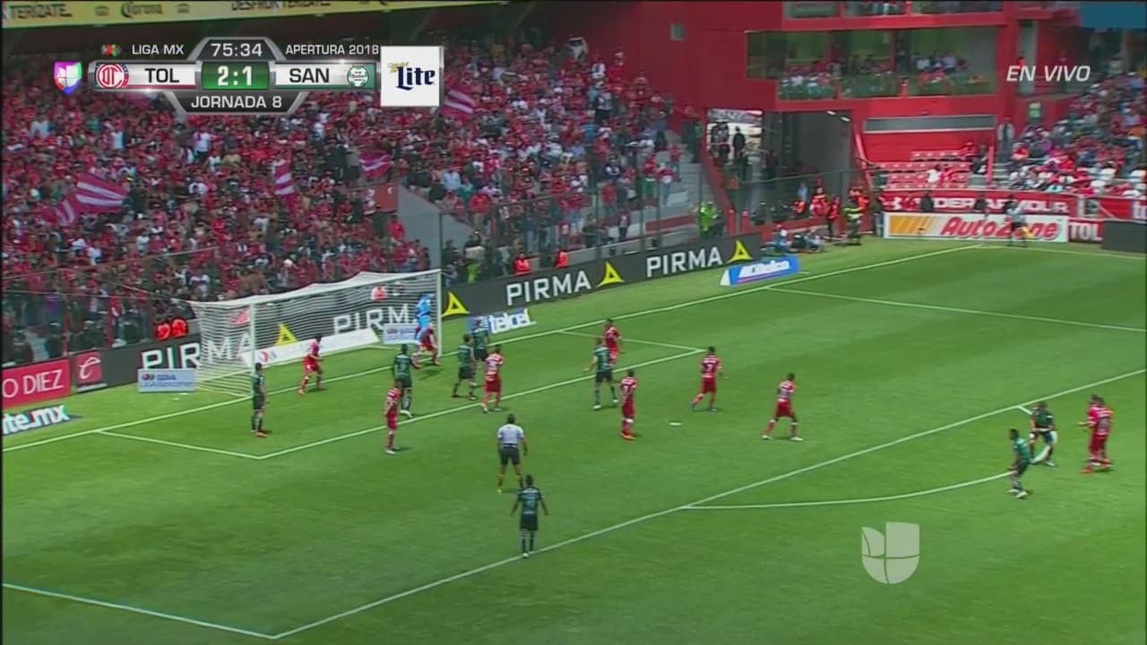 Una pelota a balón parado genera peligro para el cuadro lagunero, sin embargo, se quedan con las ganas ya que se va apenas por encima del palo horizontal.