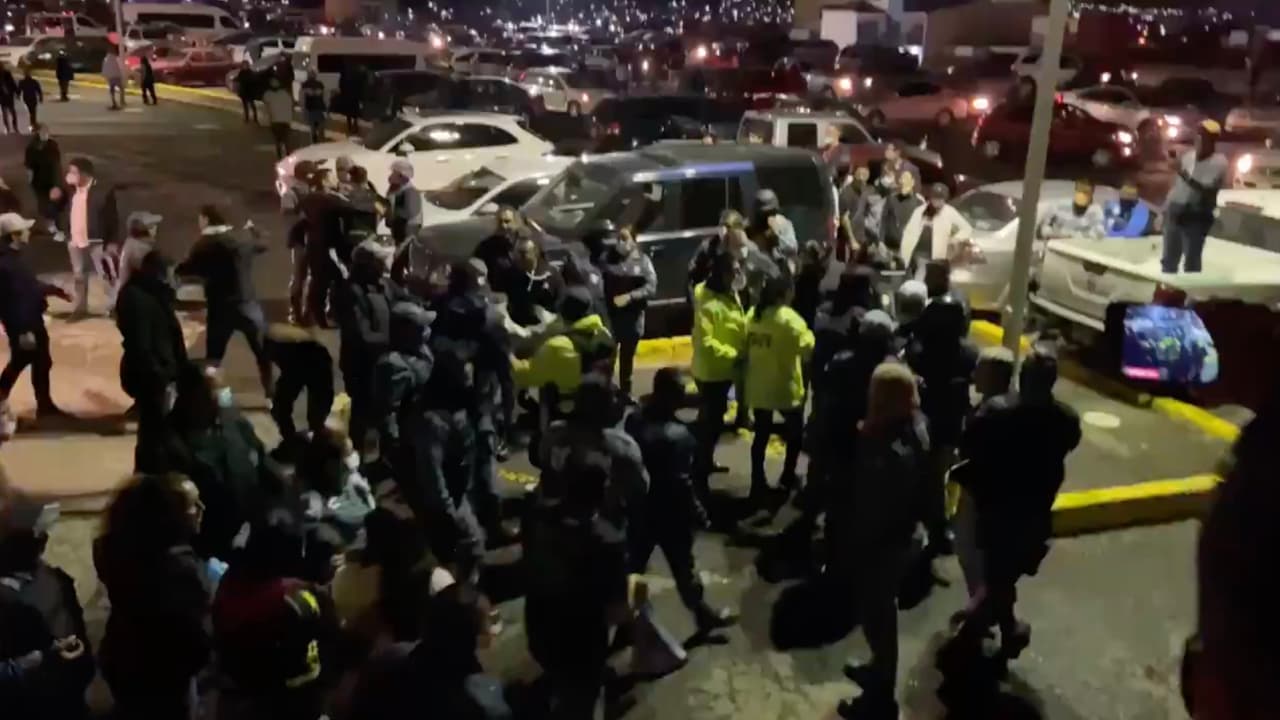 Sin que pasara a mayores por la intervención de la policía se dieron estas imágenes afuera del Estadio Hidalgo.