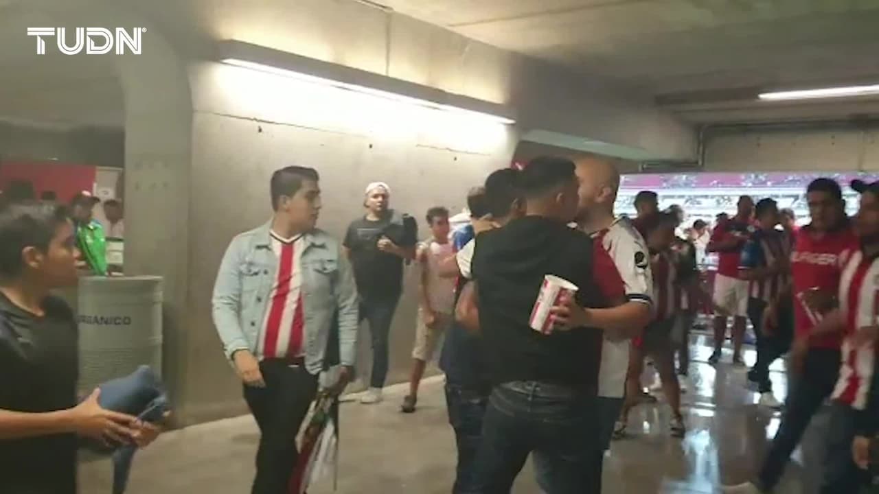 Tras el silbatazo de César Arturo Ramos la pasión se desbordó de algunos seguidores rojiblancos que originó que uno quedara con sangre en el rostro y con la necesidad de recibir ayuda médica.