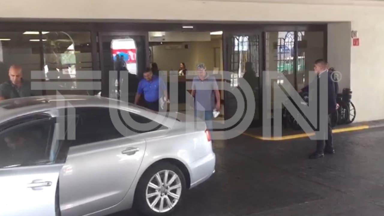 El timonel de Tigres fue captado por la cámara de TUDN cuando dejaba el hospital con una férula en el brazo derecho y un caminar lento tras el accidente automovilístico que tuvo este sábado.