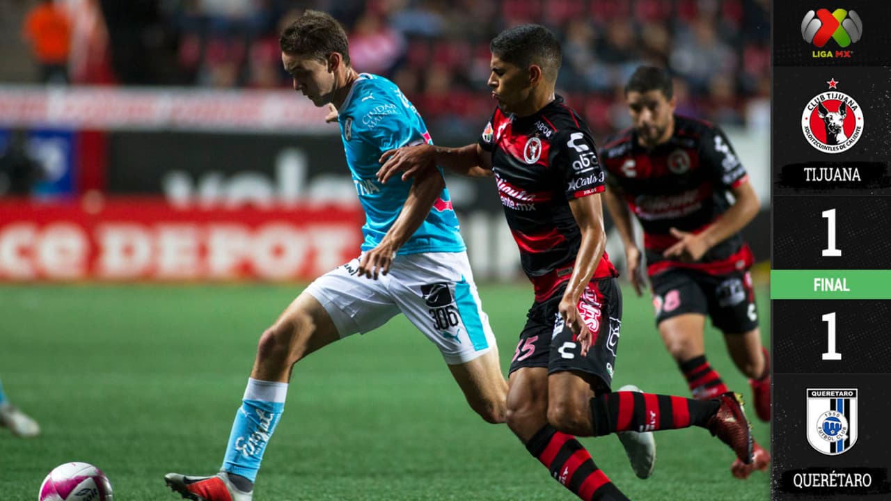 Con polémica arbitral en un encuentro parejo, Tijuana y Querétaro dividieron unidades.