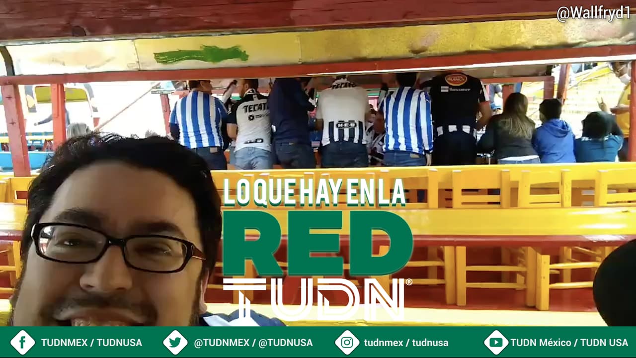 Pasadas las cuatro de la tarde llegó la porra del América, enfundada en playeras y mantas que hacían espectacular su arribo al ritmo de los bombos, cánticos y humo azulcrema.