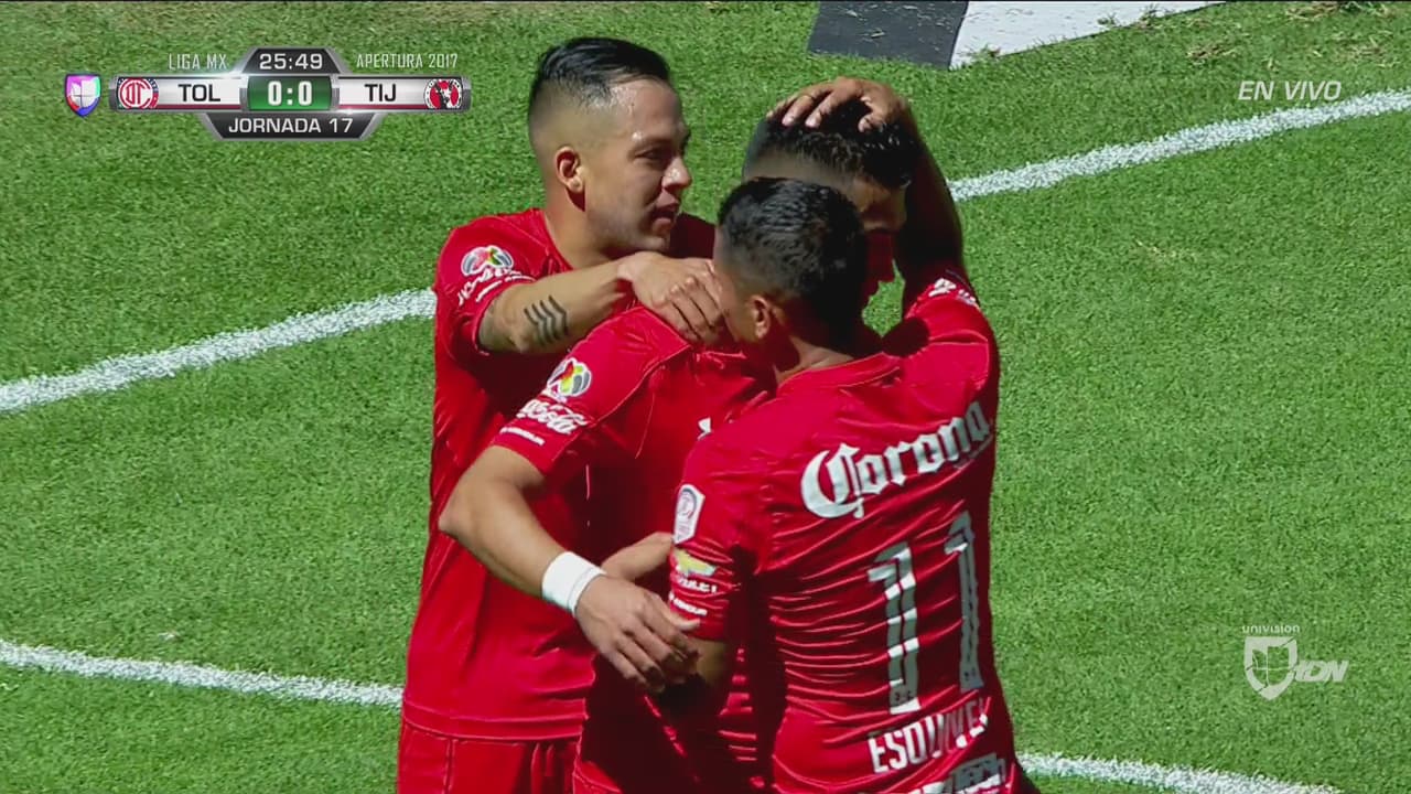 El delantero del Toluca abrió el marcador con un sólido remate que le dobló las manos al arquero de Tijuana.