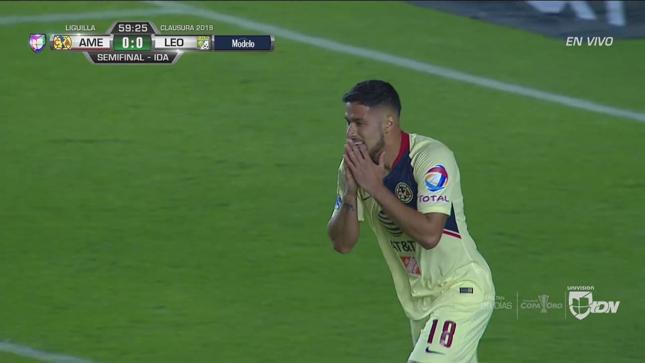 El central de América se levantó en el área ante la complacencia de Mosquera, quien no se habló con cota y el balón se fue abierto.