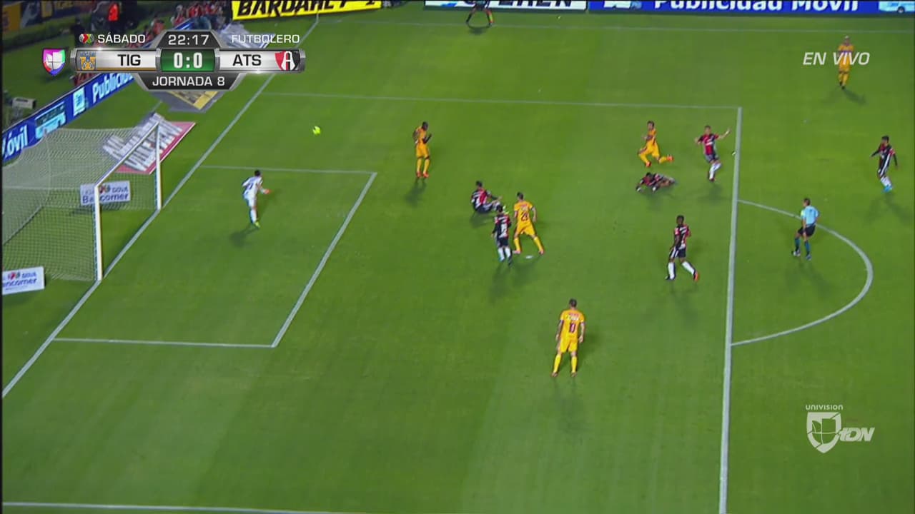 El delantero chileno de Tigres golpeó un balón suelto tras un despeje de cabeza de la zaga rojinegra.