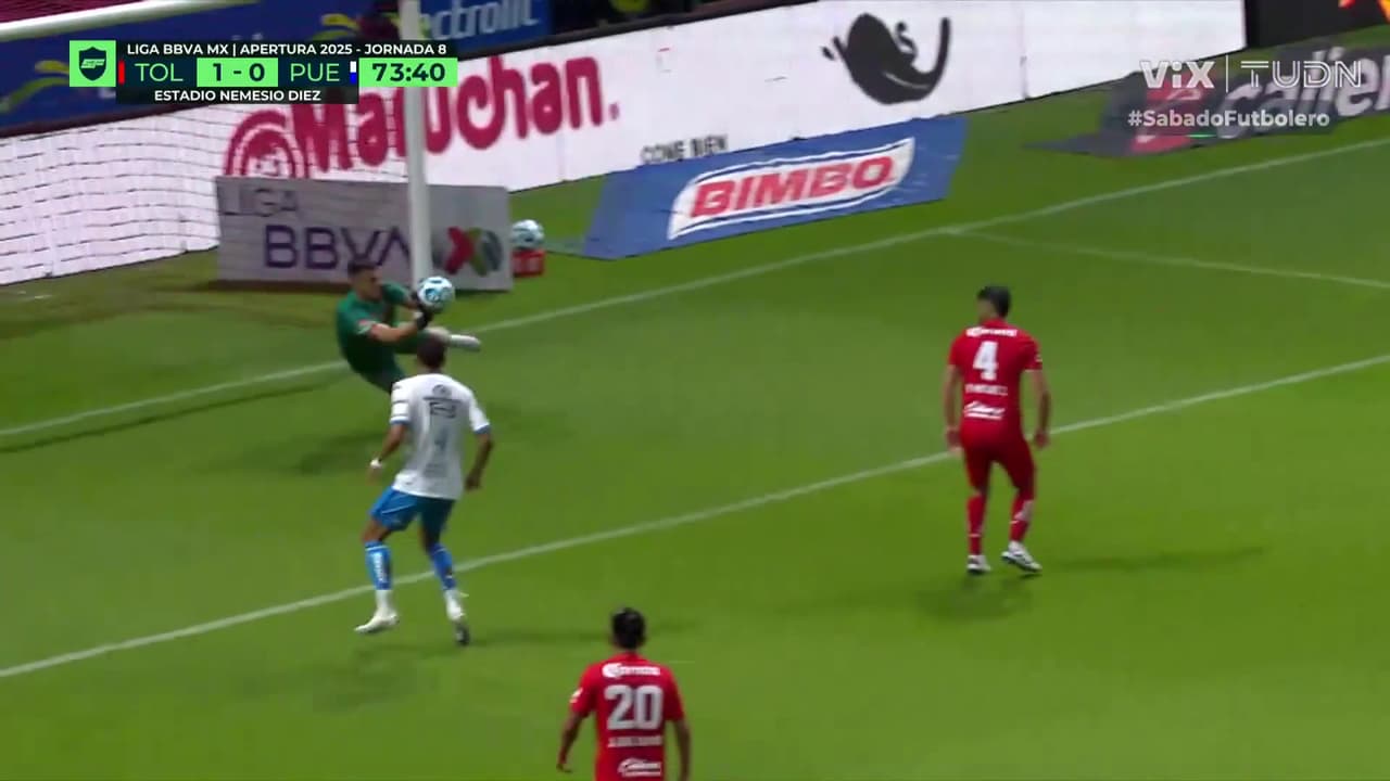 El arquero del Toluca saca el gran tiro de Castillo y en el rebote Orona no alcanza a rematar el balón.