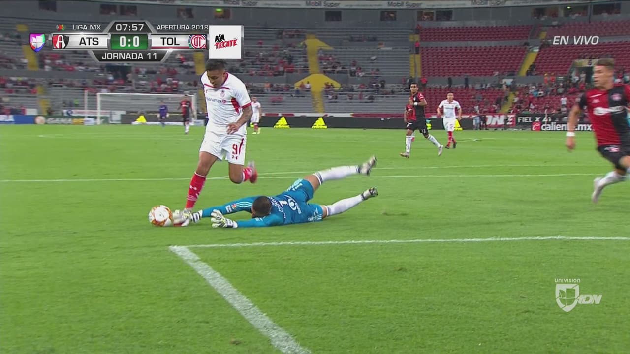 Hernández nunca se venció y logró mantener su arco en cero cuando el delantero del Toluca se vio sólo frente a él.