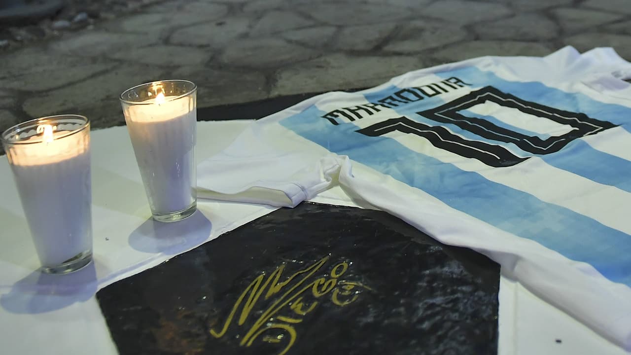 Veladoras y una playera en el Estadio Azteca en honor a Diego Armando Maradona