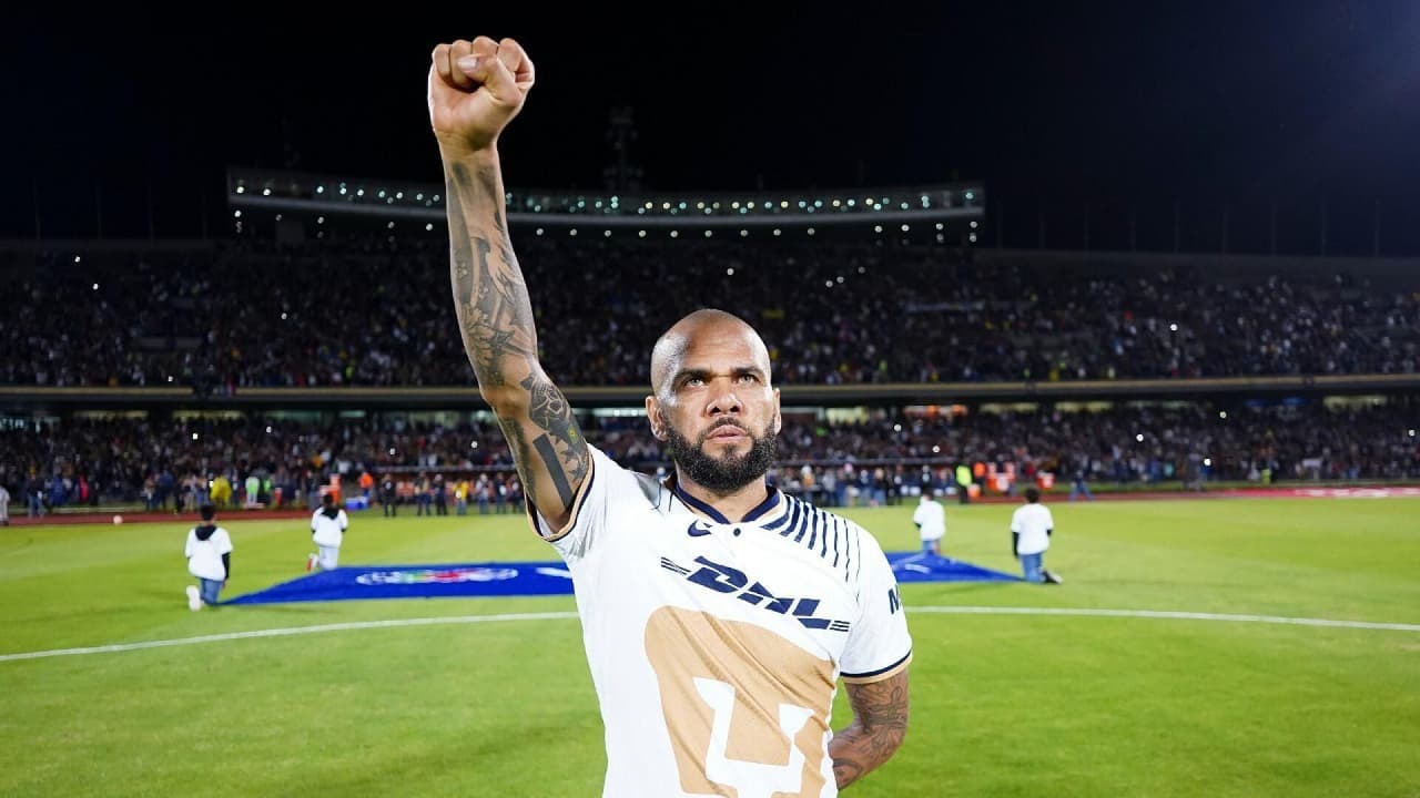 Dani Alves elevó el brazo derecho, mostró el puño y con total respeto escucho el Himno de la UNAM en la mitad del campo del estadio dentro de la Fecha Doble del futbol mexicano.