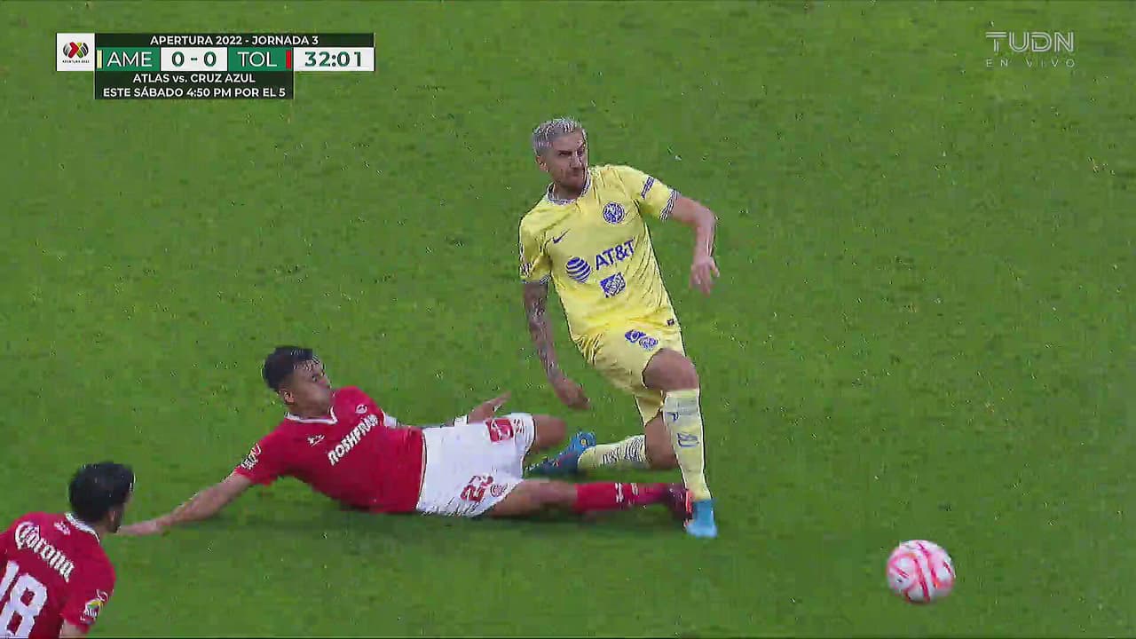 Álvaro Fidalgo hizo un golazo antes del descanso en el partido entre el América y Toluca de la Jornada 3 del Apertura 2022 de la Liga MX, pero Adonai Escobedo llevó la jugada a revisión en el VAR y terminó por anular el gol de las Águilas.