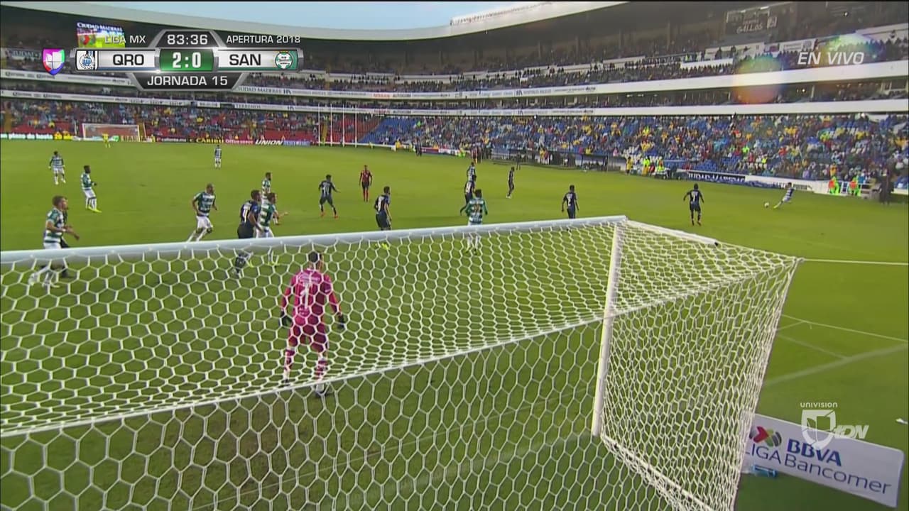 Lozano lanzó un balón que iba con dirección al arco pero Volpi alcanzó a manotear y la pelota dio en el poste.