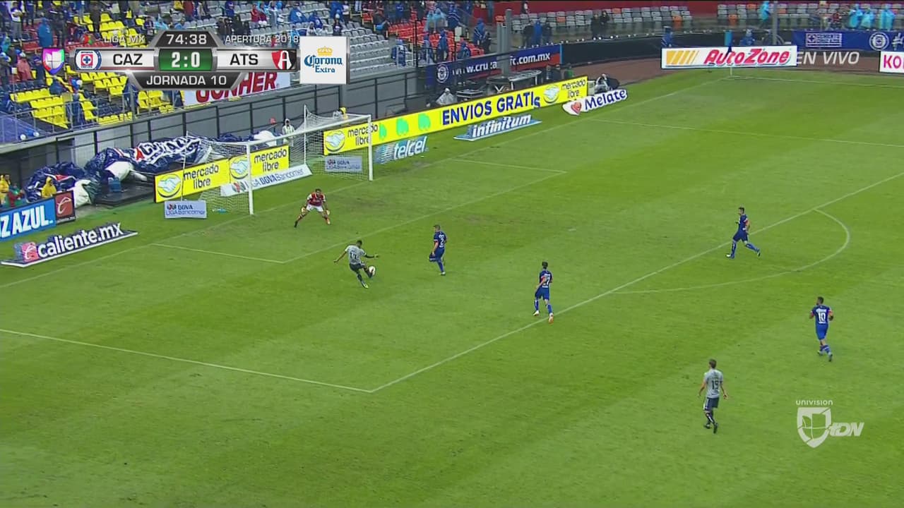 En la jugada siguiente, de nuevo el arquero celeste, se hizo presente, al atajar un mano a mano de Andres Andrade. El colombiano entró al área por la banda izquierda y cruzó la pelota, pero Corina resolvió con gran categoría. Esa fue la última de peligro que logró tener el Atlas, antes de que ‘La Máquina’ decidiera que era tiempo de cerrar el partido y solo ‘pasear’ la pelota.