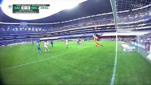 El delantero de Cruz Azul prendió el esférico, pero el portero de Necaxa desvió al 20’.